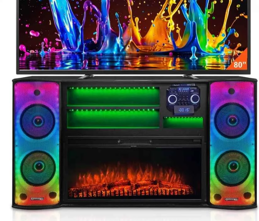 BROOKLYN FIREPLACE TV STAND WITH | SPEAKERS