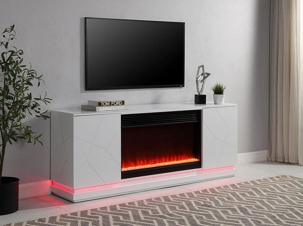 The Clay CLAYTON WHITE 70" TV STAND WITH | FIREPLACE AND BLUETOOTH