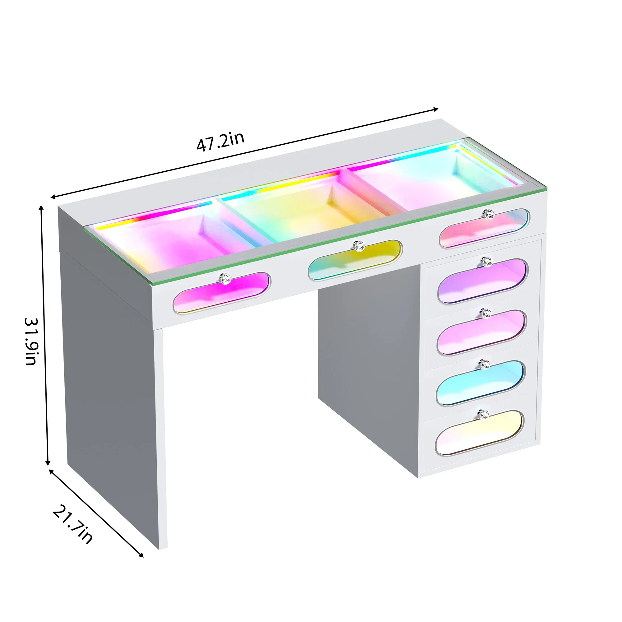 moreTransform your beauty routine with the New Trending Vanity Desk, a professional-grade makeup station featuring 7 ultra-spacious drawers and customizable RGB mood lighting. This complete vanity solution combines massive storage with salon-quality illumination for the perfect getting-ready experience.