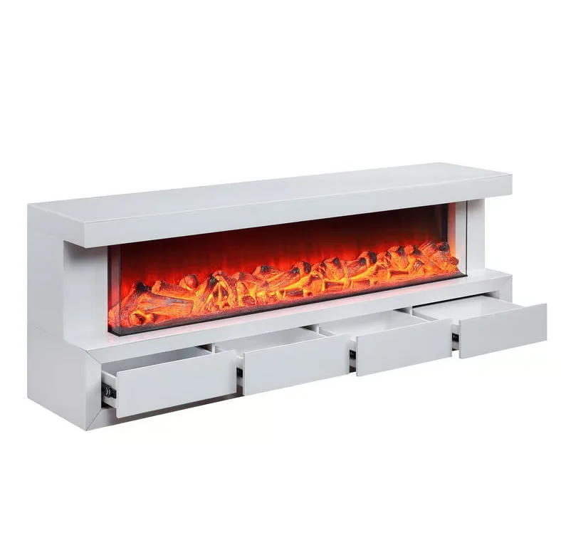 moreDiscover the Dorian TV Stand, a perfect blend of functionality and contemporary design. This elegant TV stand features a built-in fireplace with 7 selectable flame color options, adding a cozy touch to your space. It's equipped with a speaker system offering Bluetooth connectivity for an immersive audio experience. The stand boasts four spacious drawers, providing ample storage for your media and accessories. Crafted for easy setup, it requires minimal assembly, mainly involving the placement of realistic-looking fake wood in the fireplace area. The Dorian TV Stand is not just a piece of furniture, but a lifestyle upgrade for your modern home entertainment needs.