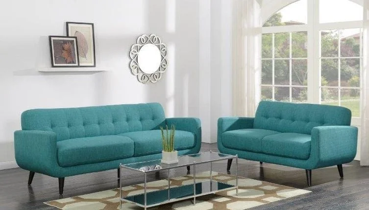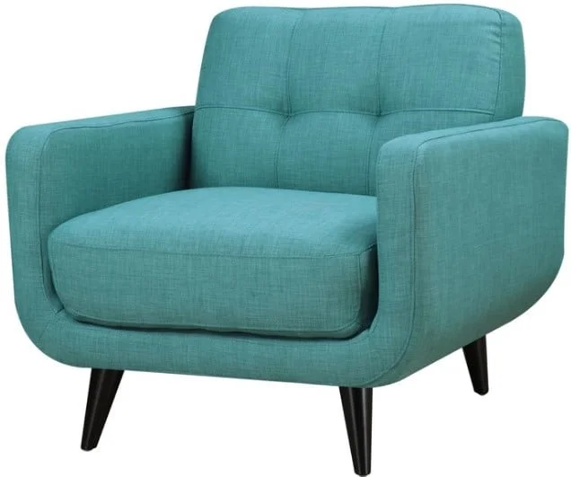moreThe retro, contemporary styling of this chair will shine in your space of choice. Its splayed legs, tufted seats, and backs combine with clean track arms to bring form an eclectic look you'll love.