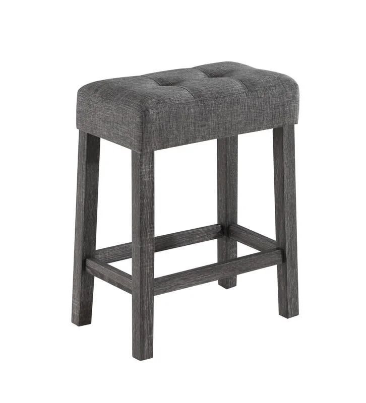 Ergonomic Seat, Stool Size: 18"W x 11"D x24"H, Slightly Flared Stool Legs, 3 Tufted Linen Stools, Counter High Table Top, Natural Wood Distressed Pattern, 60" Wide Table Top, 36" Height Table Top