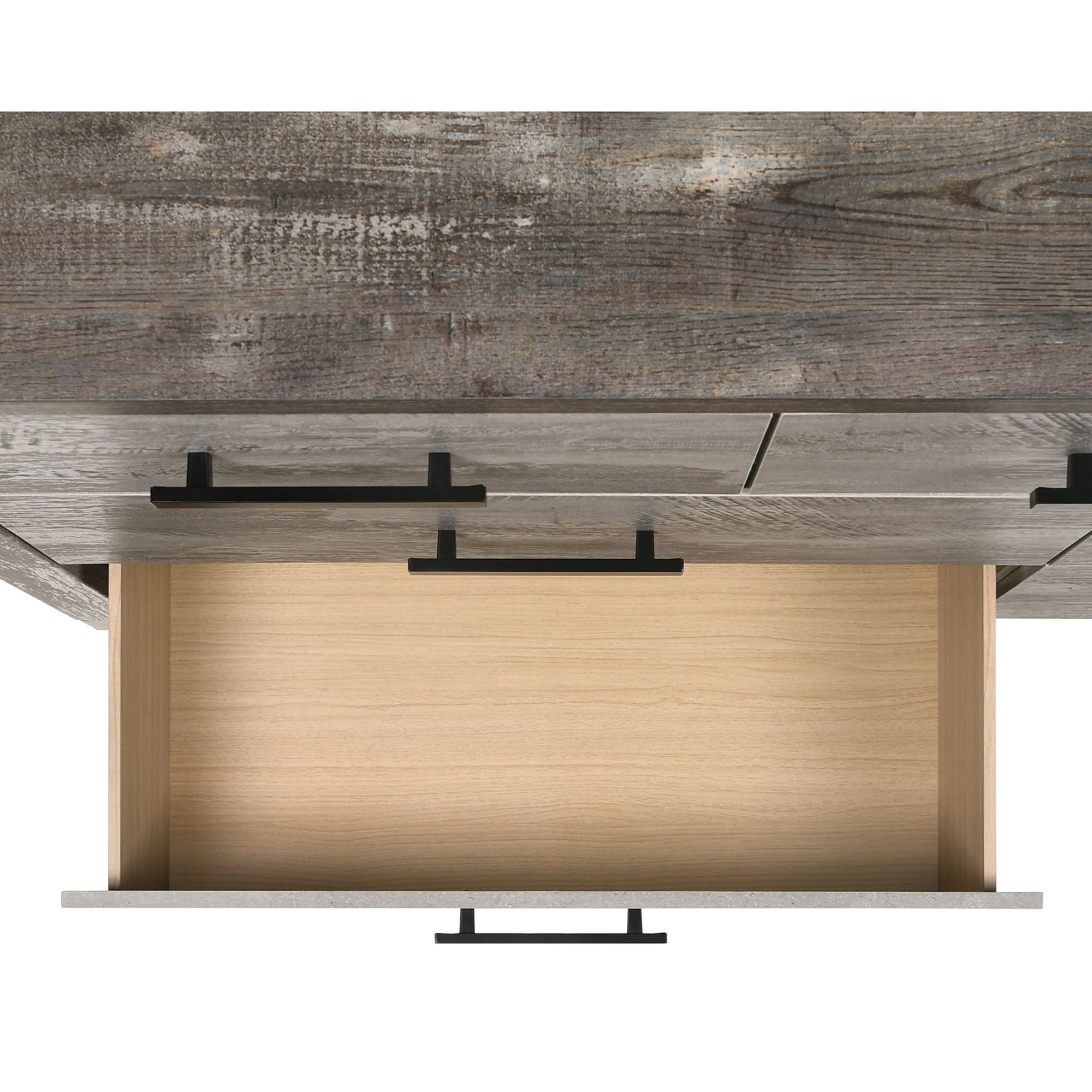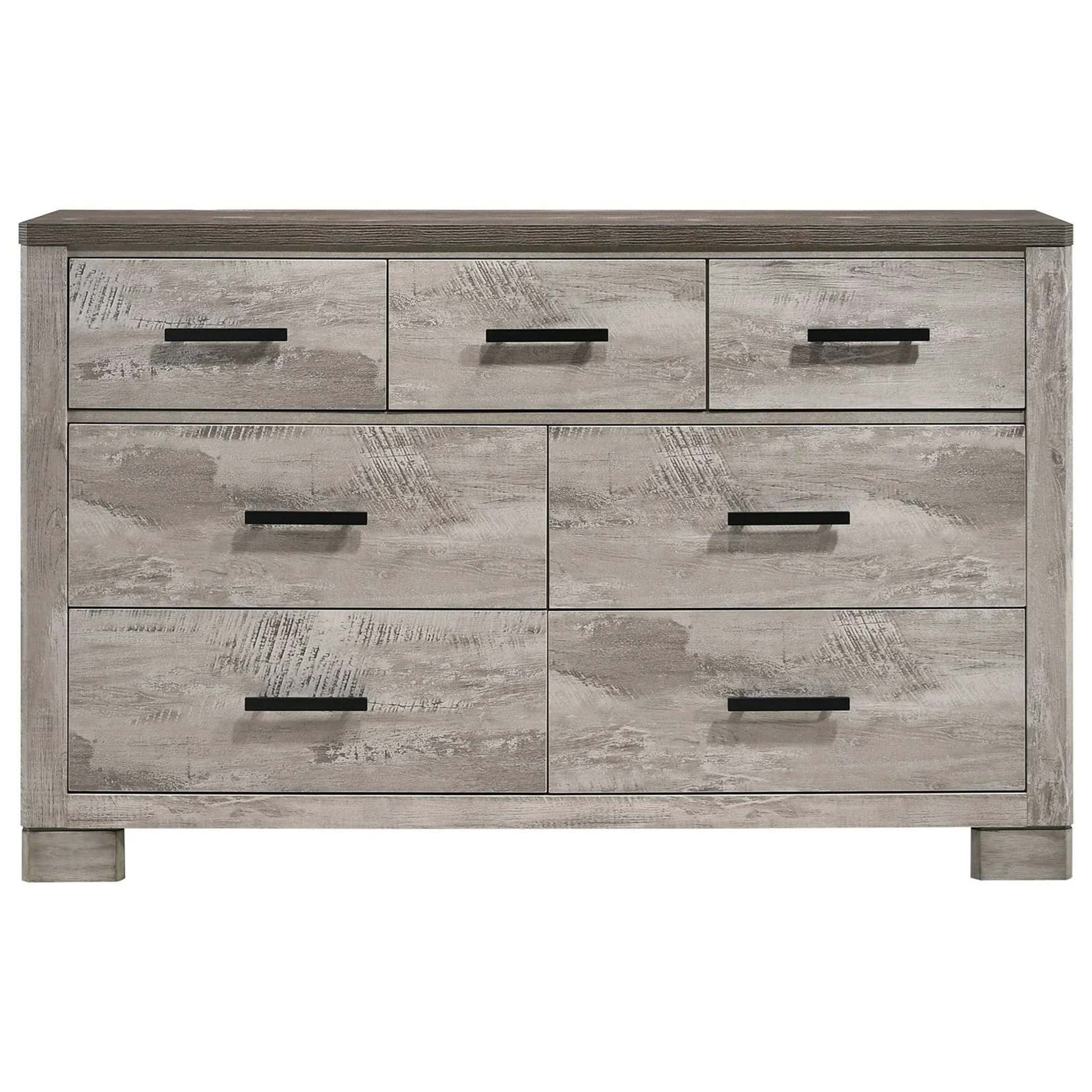 This 6-Drawer Dresser will look great in your bedroom! This horizontal dresser offers six spacious drawers, perfect for storing away your belongings. The top drawers are lined with velvet, easily allowing you to store away your more delicate belongings. This dresser has a 3D paper finish, comes in distressed gray color, giving you a cool update to traditional furniture. The top of the dresser features a darker gray finish, beautifully contrasting with the light gray. The dark metal drawer handles complement the finish beautifully. The thick, blocked feet adds the perfect finishing touch to this transitional piece.