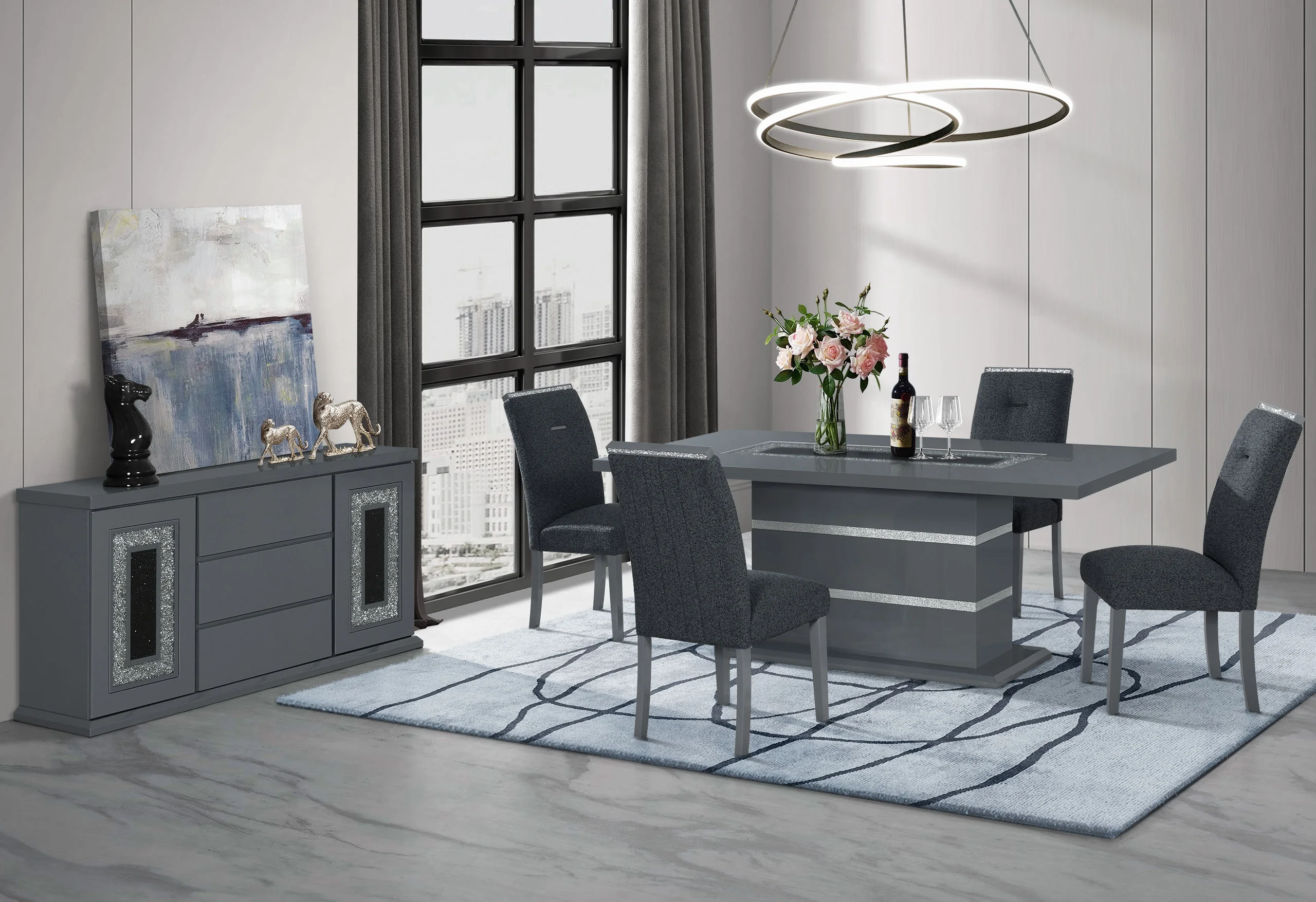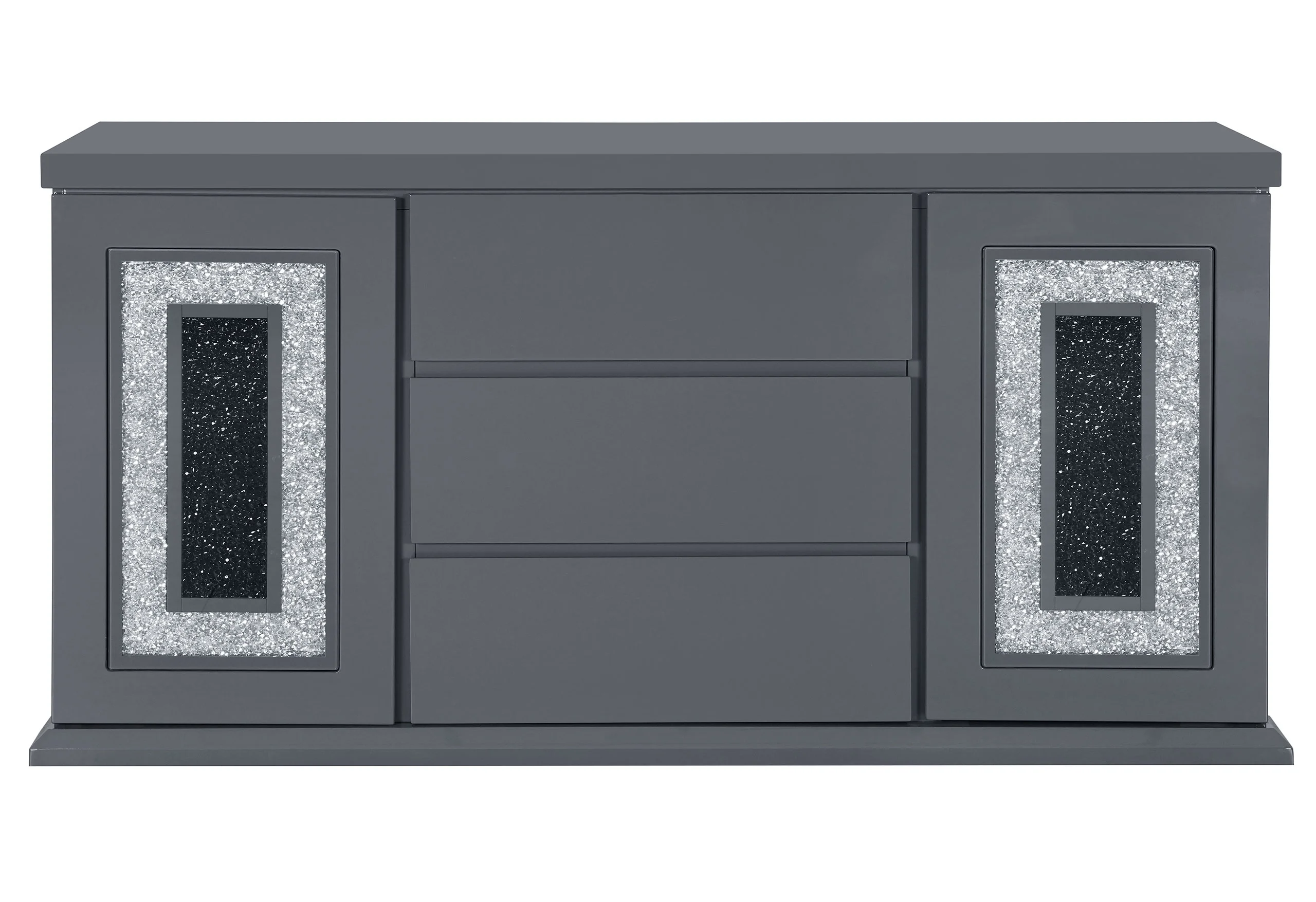 Glitter Detailing Style Elements, High Gloss Finish, Constructed Of Mdf, Glass And Acrylic, Finished In A Dark Gray And Silver With A Center Glass