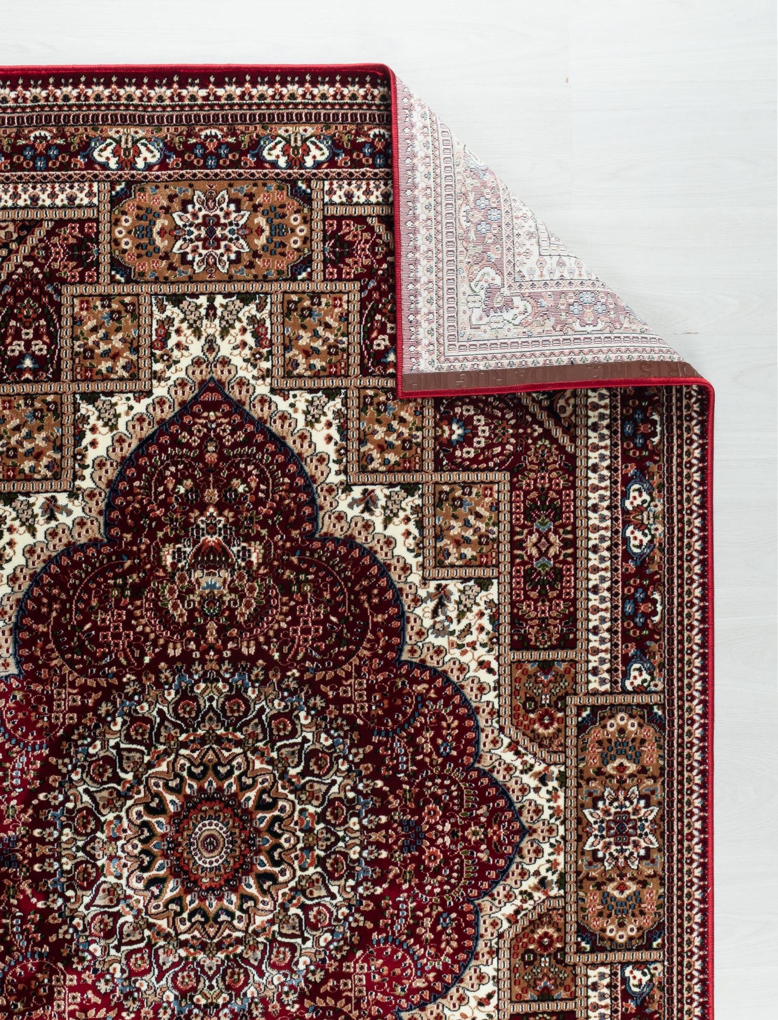 moreThis Traditional designed rug collection is constructed from 100% polyester fiber. These beautiful rugs feature a woven construction with an edge serged finish. This rug will be the perfect enhancement to your living space.